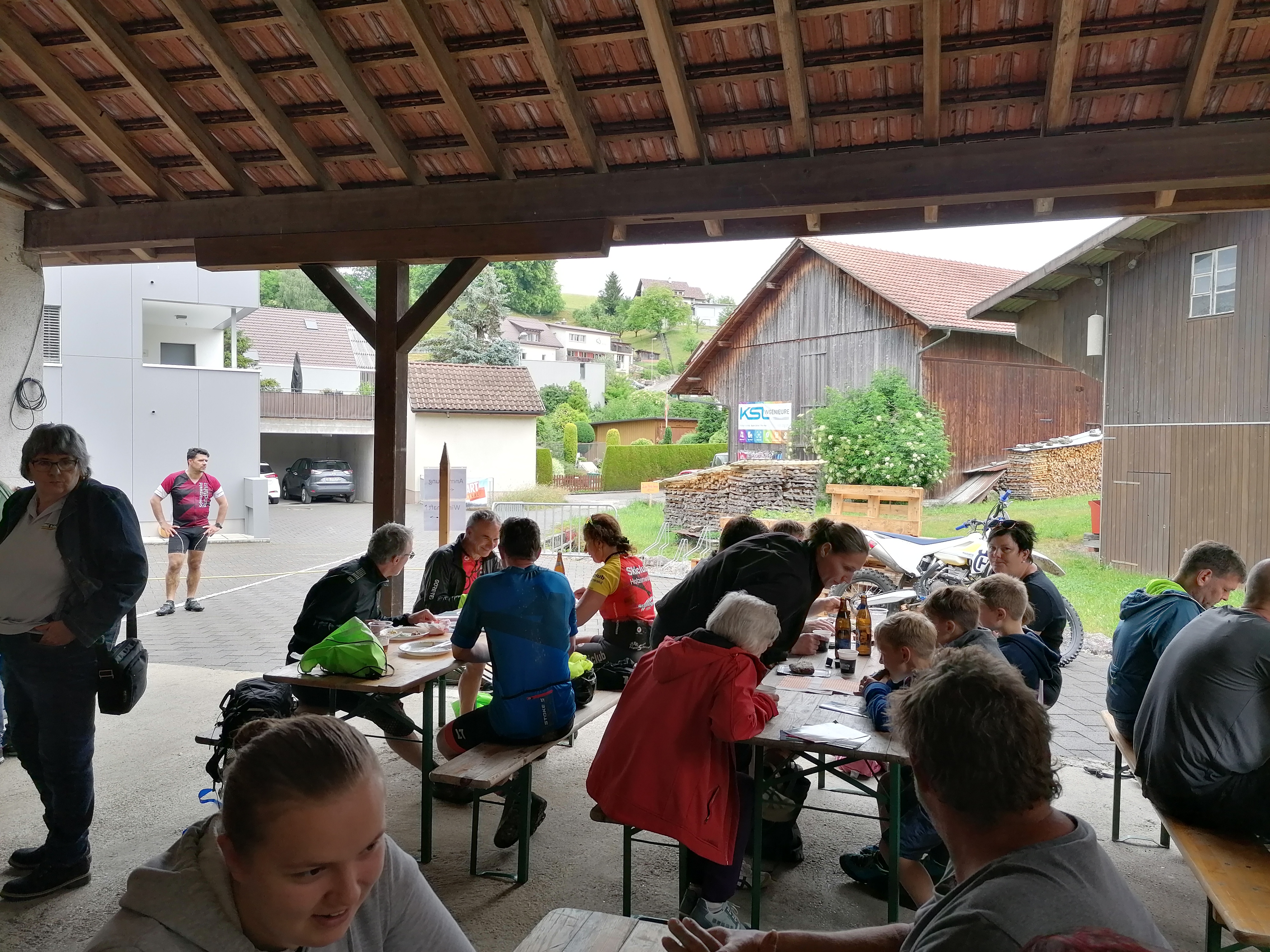 An einem oder zwei Verpflegungsposten kamen die Teilnehmer vorbei. Von den 108 gestarteten absolvierten rund ein Drittel die lange, 60-km-Tour. Die meisten Fahrer nahmen die 40-km-Tour unter die Räder und einige Familien mit Kindern die 20-km-Tour. Bei den Kindern zeigte sich das Motto des VMC Schupfart: "Wir biken bei jedem Wetter" deutlich, waren doch die meisten Kids mit Eltern aus Schupfart.