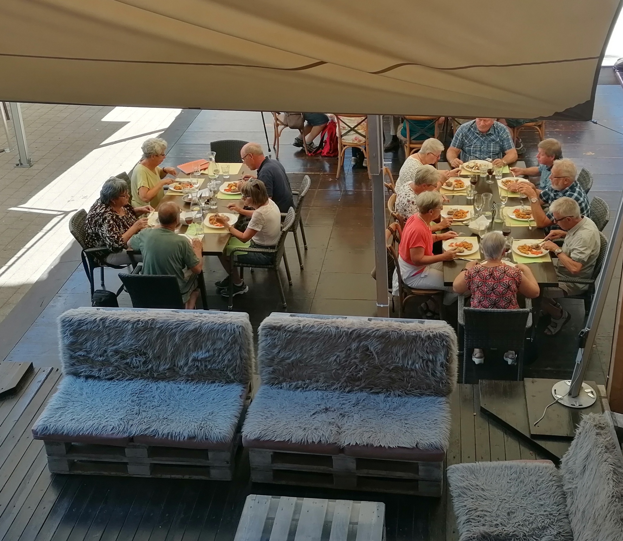 Auf direktem Weg ging die Fahrt vom staubtrockenen Fricktal zum etwas grüner anmutenden Knotenpunkt zwischen Zugerland und Kanton Zürich nach Sihlbrugg. Im Steakhouse und Veranstaltungslokal dem Dukes wurde uns auf der geräumigen Terrasse ein feines Mittagessen serviert. Auch der regionale Wein mundete den Teilnehmern bestens, was die Wirtin natürlich erfreute.
