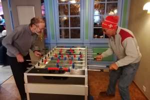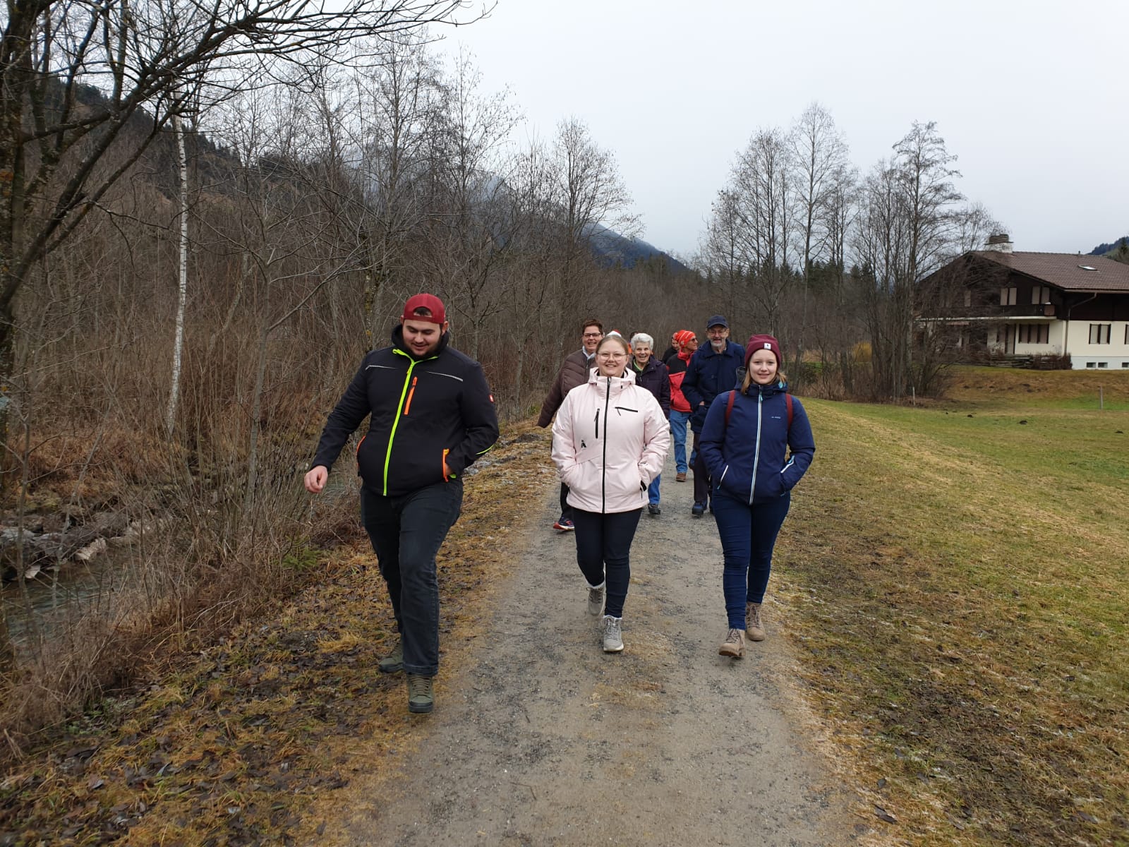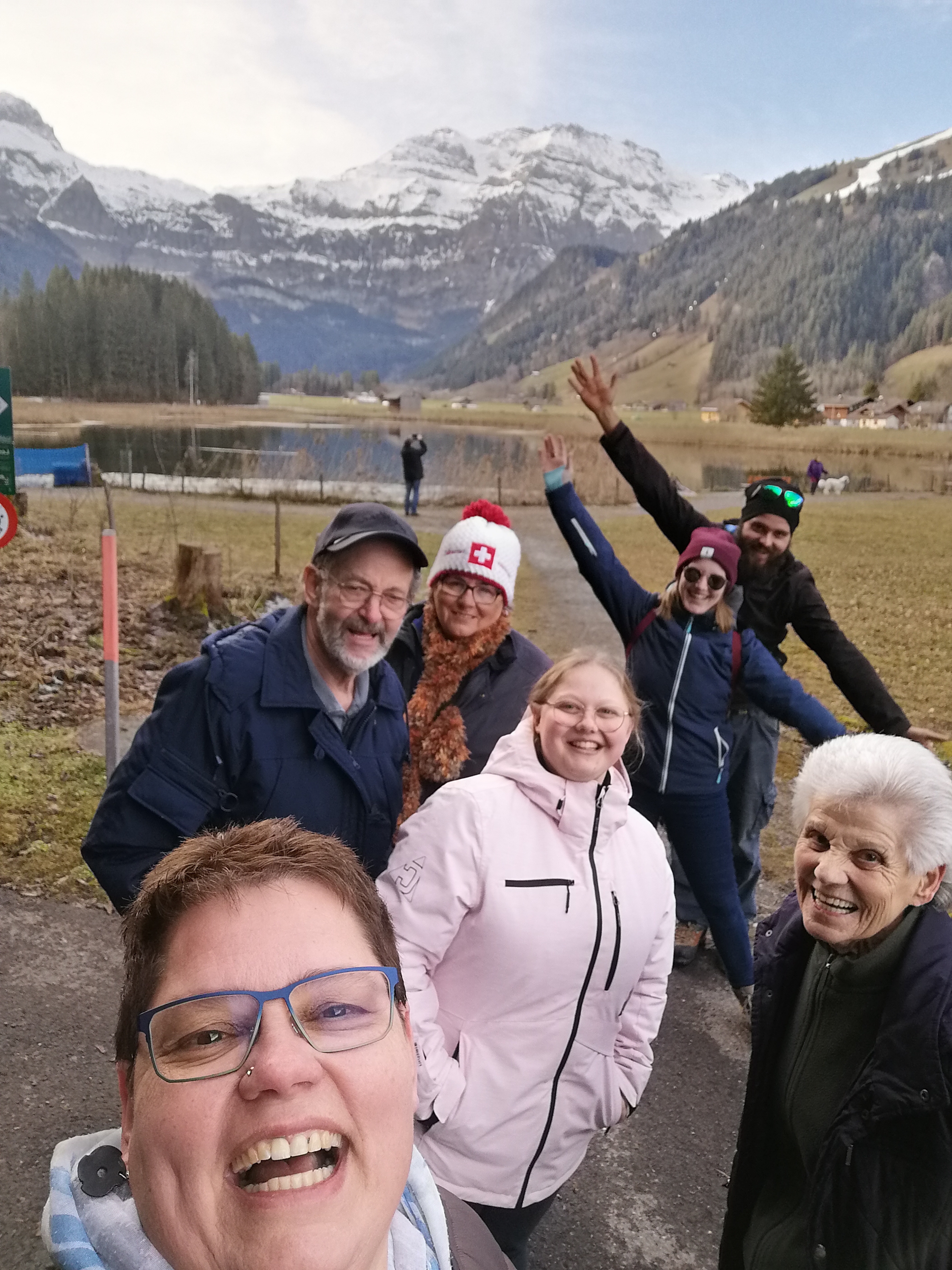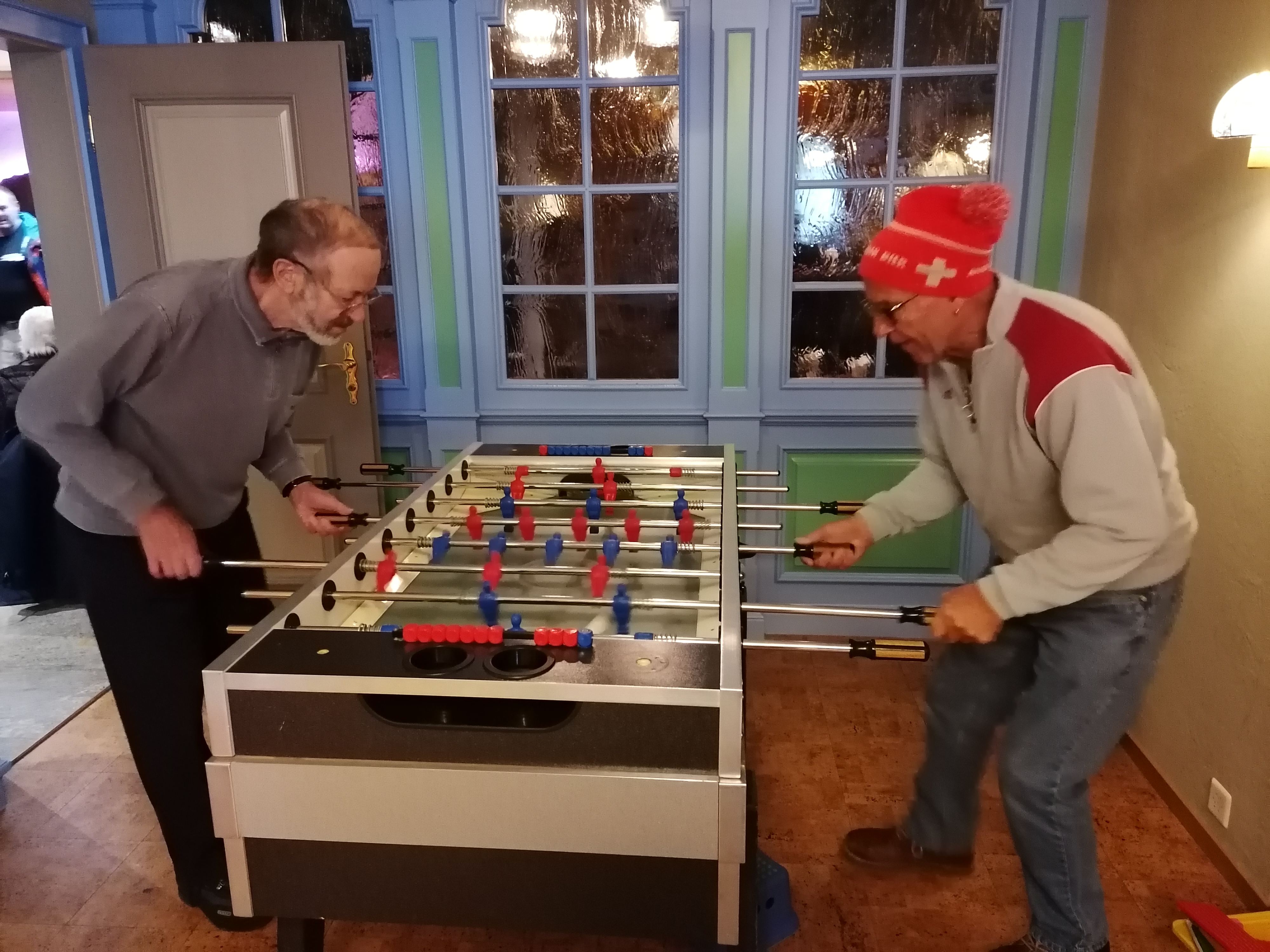 12 Sportler begaben sich nach der Anfahrt in Lenk direkt auf die Piste. Schon bald trudelten die ersten Winterbilder beim Happy-Team (so wird vereinsintern die Fussgänger-Gruppe bezeichnet) ein. Im Tal unten hatte es zwar keinen Schnee, dafür wurde bei trockenem Wetter, teils mit Sonnenschein viel gewandert, sodass am Abend alle einen sportlichen Tag hinter sich hatten. Dass das Hotel noch einen grossen Wellness- und Badebereich hatte, war eine schöne Zugabe, sodass vor dem Abendessen die meisten noch die müden Muskeln regenerieren konnten. Nach dem Essen wurde dann noch die Kameradschaft bei Billard und am Töggelikasten gepflegt. Einige machten sich noch auf ins Dorf, wo die «Uussuffete» stattfand. Es ist vermutlich nur ein Gerücht, dass sie schräg angeschaut wurden, vermutlich weil sie sich als einzige Nichteinheimische an ein Fest trauten. Aber die Schupfarter sind sich ja Feste gewohnt und es wurde mitgesungen und nicht nur Wasser getrunken.