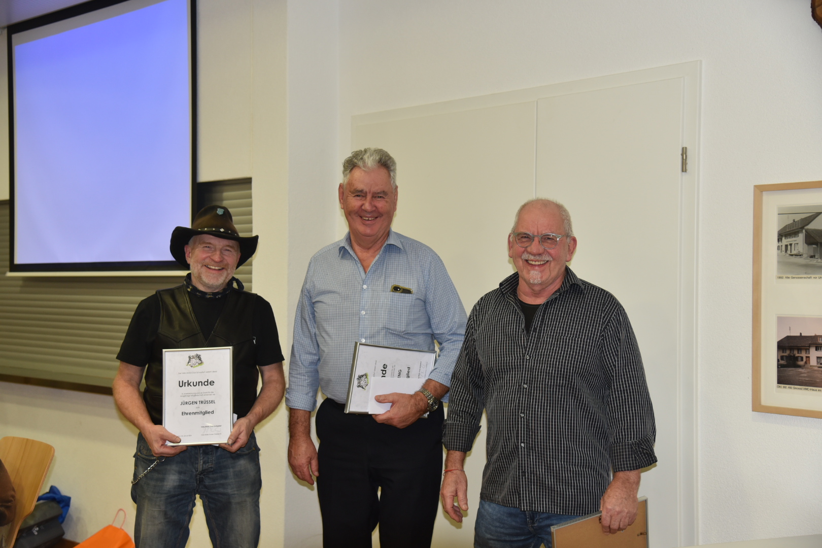 Ein besonderer Moment der Versammlung waren die Ehrungen. Zum 50-Jahre-Jubiläum konnte Anton Ries gewürdigt werden. Zudem wurden Paul Meng und Jürgen Trüssel für ihre langjährige Mitgliedschaft und Verdienste um den Verein zu Ehrenmitgliedern ernannt.