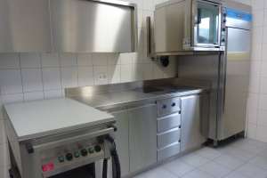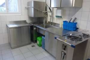 Es stehen ein grosser Kühlschrank, Kühlschubladen und auf Wunsch ein Tiefkühler zur Verfügung. Eine grosse Industrieabwaschmaschine garantiert einen schnellen Abwasch.