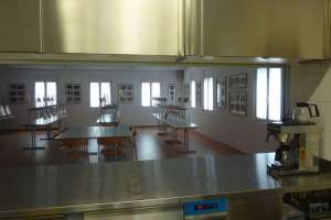 Der Raum bietet Platz für 80 Personen und Geschirr ist ebenfalls für 80 Personen vorhanden. Die Küche ist ausgerichtet auf Cateringanlieferungen. Softgetränke und Bier sind vorhanden und müssen vom Vermieter bezogen werden.